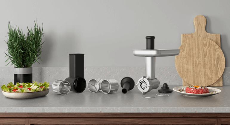Los accesorios adecuados maximizan la versatilidad de un robot de cocina. Entre los más útiles se encuentran los discos para cortar o rallar, un exprimidor de cítricos para jugos frescos y varillas para batir masas ligeras. También es muy práctico un vaso batidor para preparar smoothies y sopas. Con una cuchilla puedes picar frutos secos y hierbas sin esfuerzo. Escoge los accesorios que se adapten a tu estilo de cocina y saca el máximo partido a tu robot de cocina.